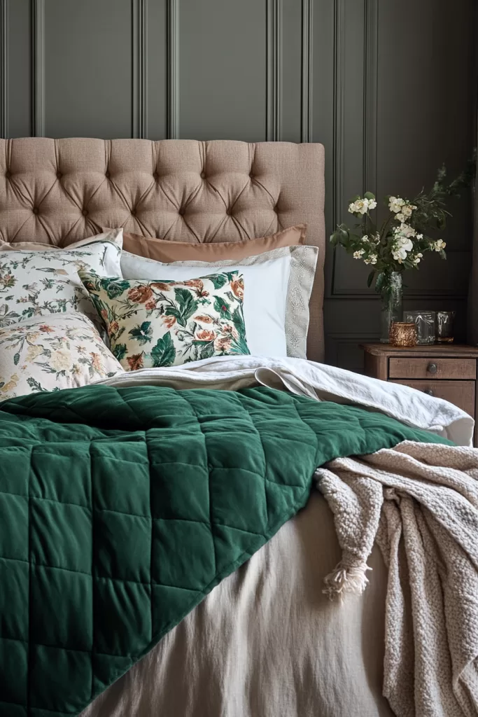 This rich color works beautifully with whites, grays, and deep browns, creating a cozy yet modern bedroom aesthetic.